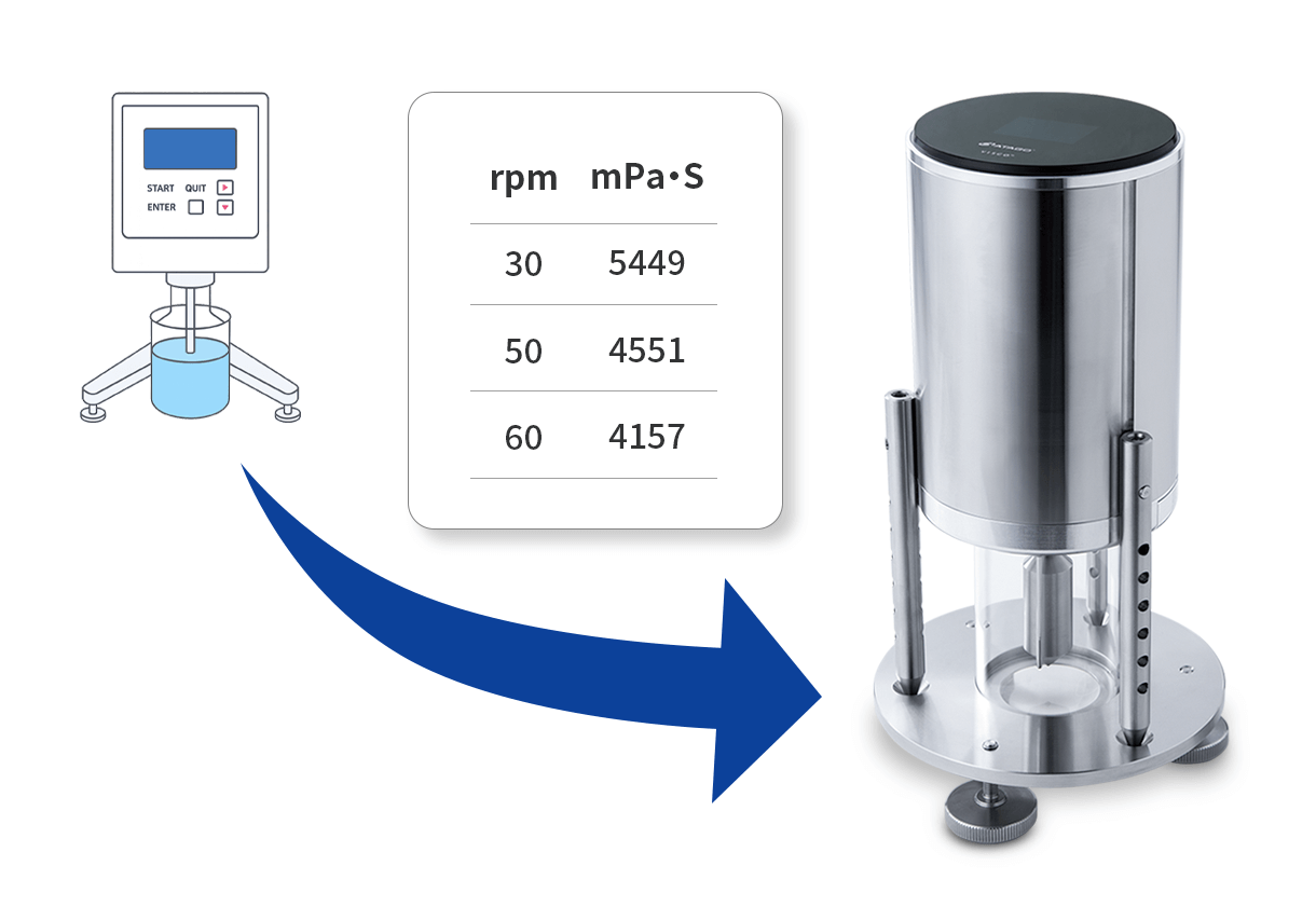 ユーザースケール機能を使えば、VISCOの表示値を従来のB型粘度計の値に合わせることが可能です。