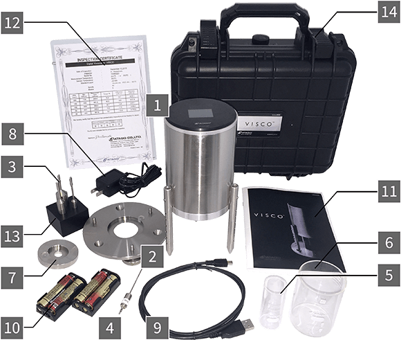 粘度計液 200、500、1000 のいずれかひとつが製品に標準付属します。